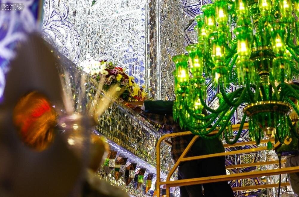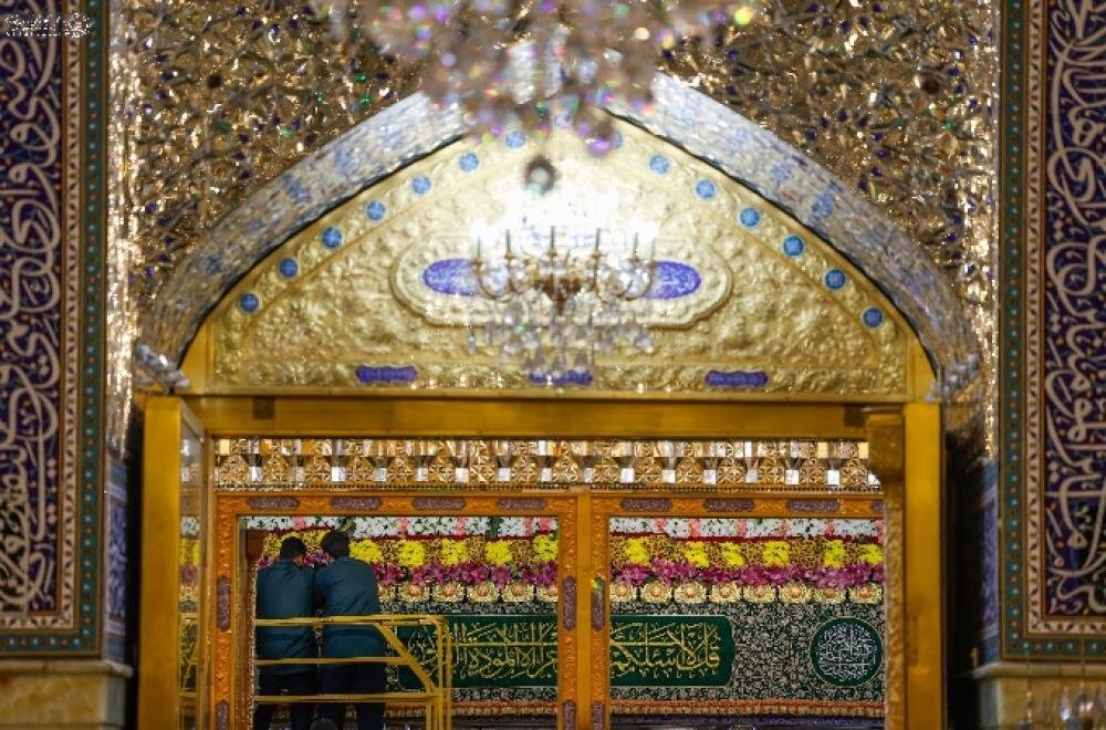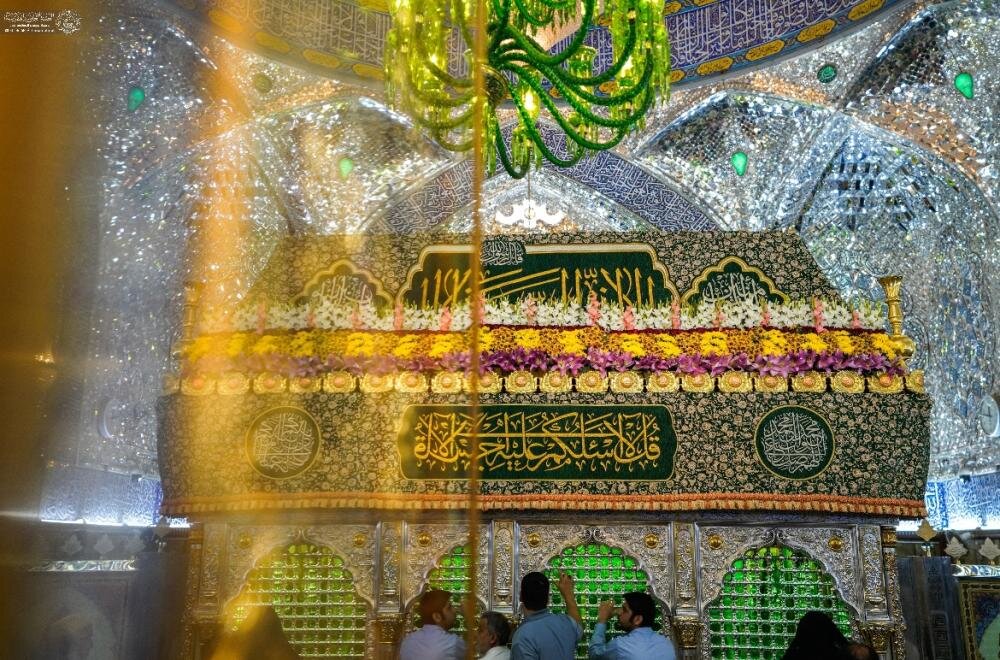 وكالة الحوزة - تشرّفت وحدة تزيين الحرم التابعة لشعبة المتابعة ورعاية الحرم بتزيين الروضة المنورة والضريح المقدس للمولى أمير المؤمنين(عليه السلام) بأكاليل الزهور الطبيعية بمناسبة ولادة الرسول الأعظم(ص).