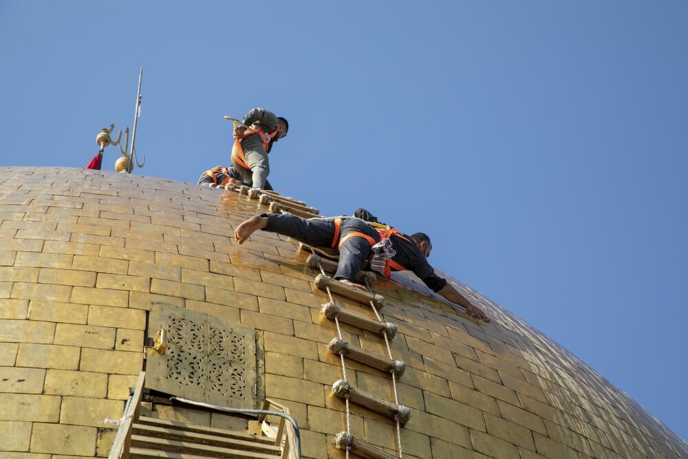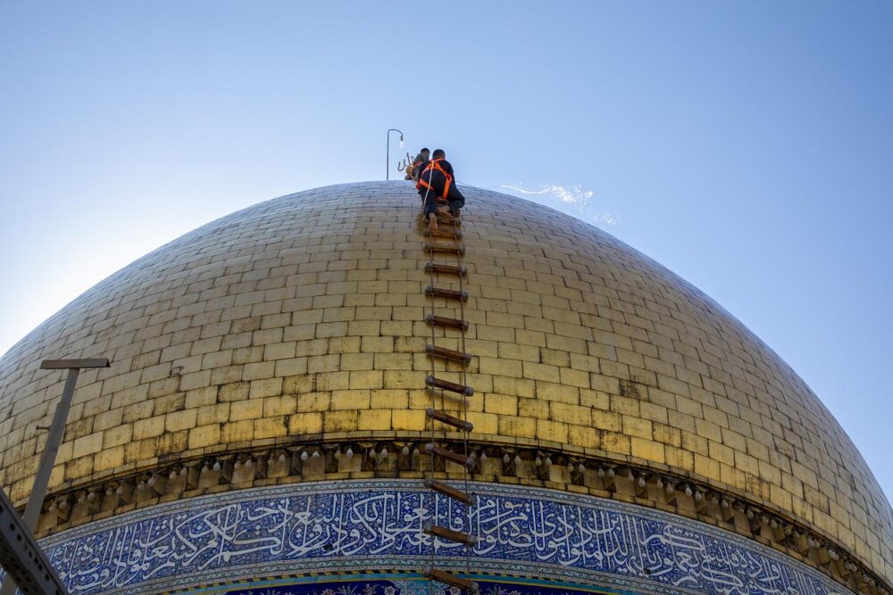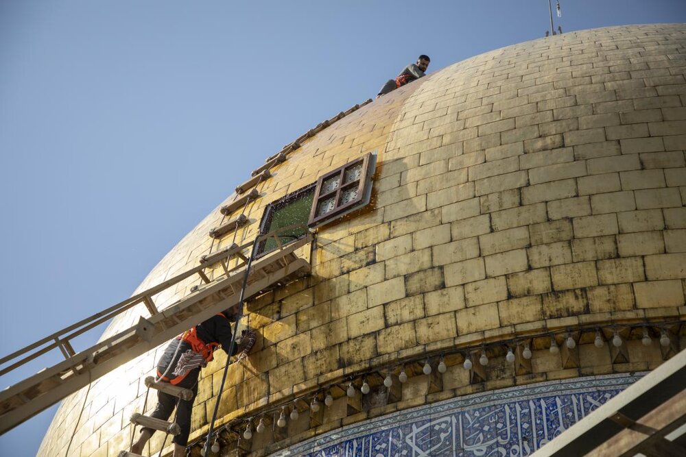 وكالة الحوزة - بدأ قسم رعاية الصحن الشريف في العتبة العباسية المقدسة من خلال وحدة الزينة بغسل القبّة المطهّرة لمرقد أبي الفضل العبّاس (عليه السلام).