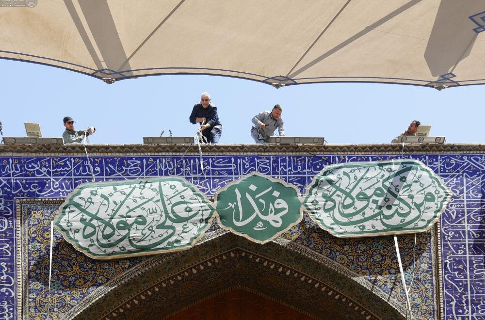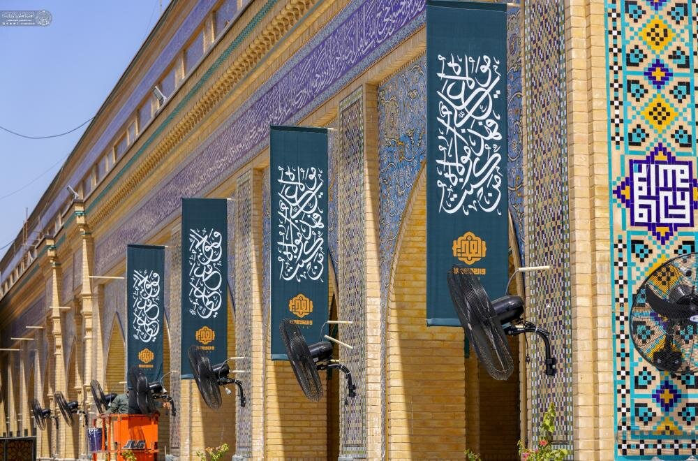 من جانبه أشار مسؤول وحدة الورشة علي كريم إلى تكثيف كوادره الفنية والحرفية جهودها بتهيئة القواطع الحديدية التي سيتم تثبيت اللوحات التعريفية الخاصة بالمناسبة و بقياسات مختلفة بالخصوص المساند الحديدية العملاقة الخاصة بحادثة الغدير الأغر المصورة والتي ستزيّن واجهتي باب القبلة أمام الزائر الكريم ".