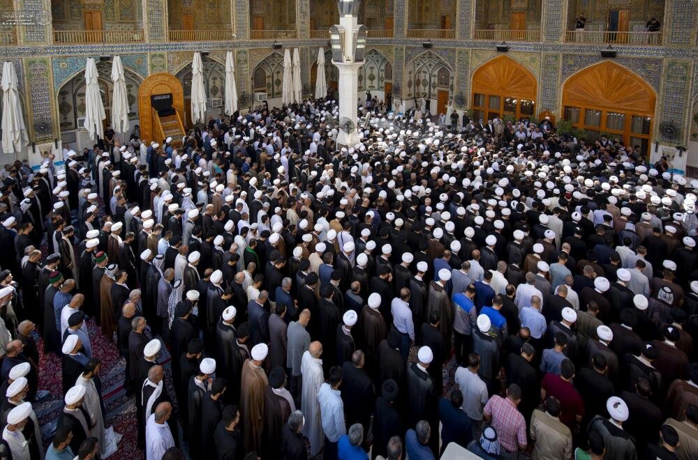 وكالة أنباء الحوزة - جرت المراسم بحضور جمع غفير من العلماء الأعلام وأساتذة وطلبة الحوزة العلمية وممثلي مراجع الدين العظام والعتبات المقدسة والمزارات الشريفة ونخب عشائرية وأكاديمية ومجتمعية غصت بهم جوانب الصحن الحيدري الشريف حيث أقيمت تلك المراسم.
