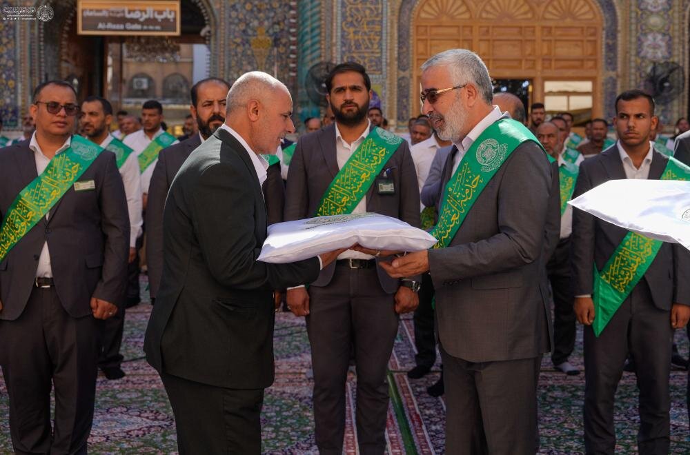 وكالة أنباء الحوزة - شهد الصحن العلويّ المطهّر صباح اليوم السبت مراسم مهيبة لتسليم رايات الغدير إلى عدد من الهيئات والمؤسسات الدينية والثقافية والخدمية من مختلف محافظات العراق، بإشراف مباشر من السيد الأمين العامّ للعتبة العلويّة المقدّسة الخادم عيسى الخرسان، وذلك ضمن فعاليات أسبوع الغدير الدولي الرابع عشر الذي سينطلق قريبًا.