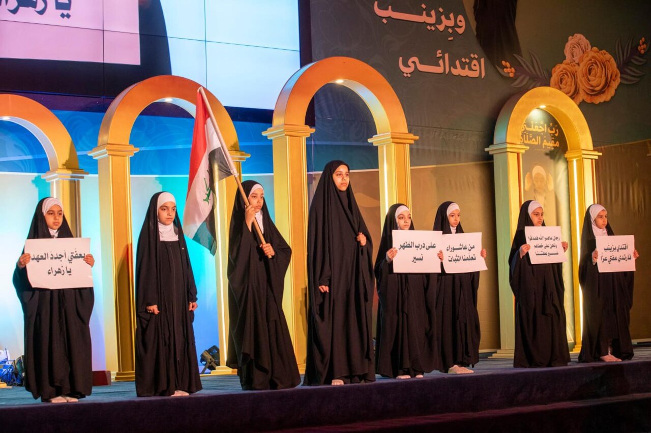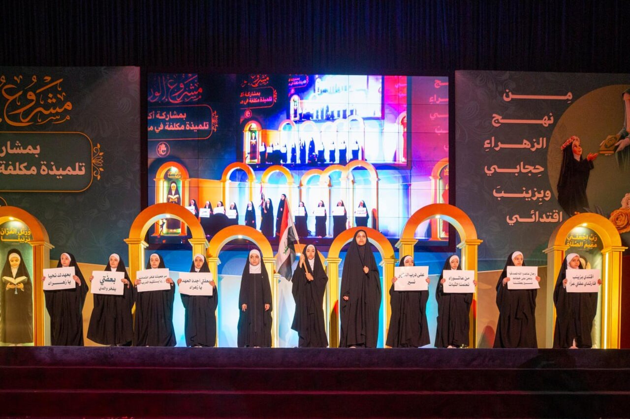 وأقامت الحفل شعبة الخطابة الحسينية النسوية التابعة لمكتب المتولي الشرعي للشؤون النسوية في العتبة المقدسة، بالتعاون مع مديرية تربية كربلاء، تحت شعار (من نهج الزهراء حجابي وبزينب اقتدائي).